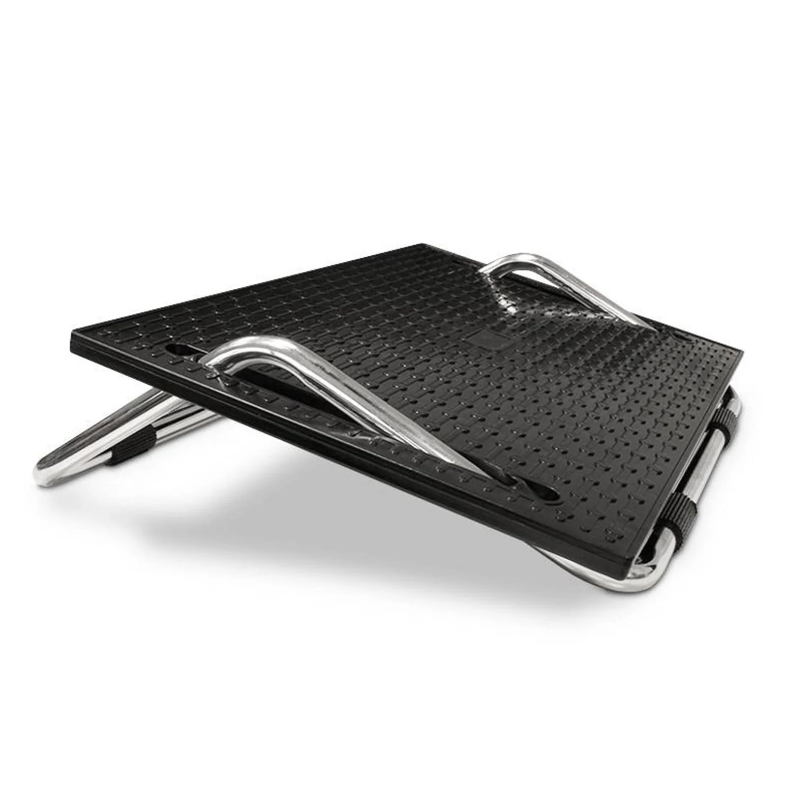 Het gestructureerde oppervlak van de kunststof plaat zorgt voor een goede grip van de voeten op het loopvlakoppervlak. De voetsteun kan vrij worden bewogen en met de voeten in de gewenste hellingshoek worden gebracht. Dit kan op elk moment worden veranderd, wat zeer gunstig is voor dynamisch zitten.
